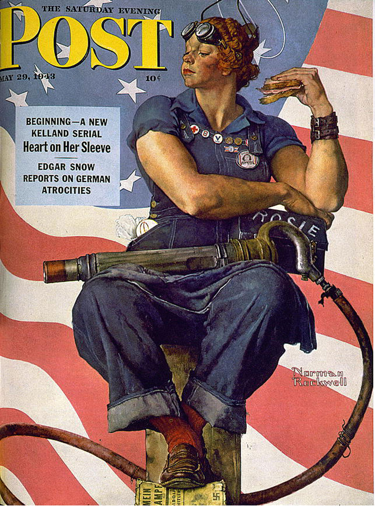 Norman Rockwell, Rosie the Riveter, 1943 November 28, 2012 / gayleclemans Share this: Click to share on X (Opens in new window) X Click to share on Facebook (Opens in new window) Facebook Click to share on Tumblr (Opens in new window) Tumblr Like Loading...